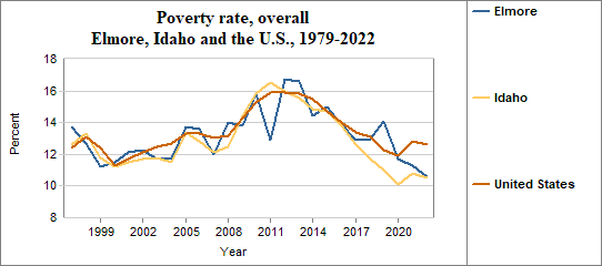 The poverty rate is the percentage of people living below the poverty level or “threshold.” Each year, the U.S. Office of Management and Budget establishes a series of poverty thresholds for different family sizes and ages of household heads. Among Elmore residents, the overall poverty rate . . .