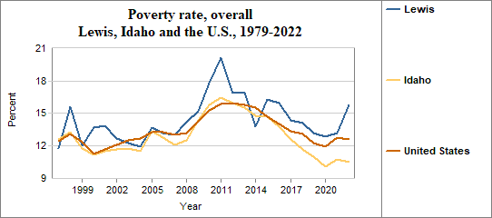 The poverty rate is the percentage of people living below the poverty level or “threshold.” Each year, the U.S. Office of Management and Budget establishes a series of poverty thresholds for different family sizes and ages of household heads. Among Lewis residents, the overall poverty rate . . .