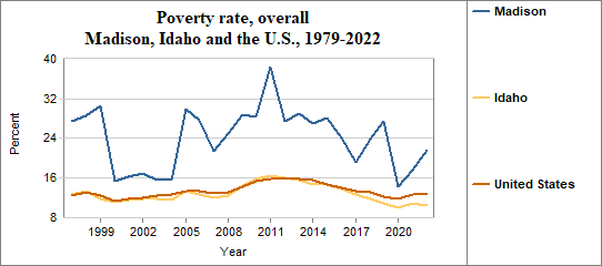 The poverty rate is the percentage of people living below the poverty level or “threshold.” Each year, the U.S. Office of Management and Budget establishes a series of poverty thresholds for different family sizes and ages of household heads. Among Madison residents, the overall poverty rate . . .