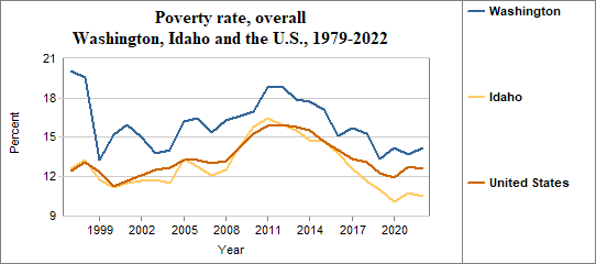 The poverty rate is the percentage of people living below the poverty level or “threshold.” Each year, the U.S. Office of Management and Budget establishes a series of poverty thresholds for different family sizes and ages of household heads. Among Washington residents, the overall poverty rate . . .