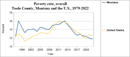 The poverty rate is the percentage of people living below the poverty level or “threshold.” Each year, the U.S. Office of Management and Budget establishes a series of poverty thresholds for different family sizes and ages of household heads. Among Toole County residents, the overall poverty rate . . .