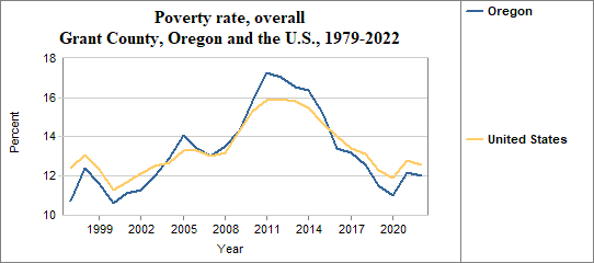 The poverty rate is the percentage of people living below the poverty level or “threshold.” Each year, the U.S. Office of Management and Budget establishes a series of poverty thresholds for different family sizes and ages of household heads. Among Grant County residents, the overall poverty rate . . .