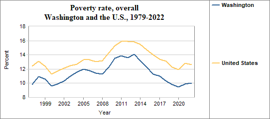 The poverty rate is the percentage of people living below the poverty level or “threshold.” Each year, the U.S. Office of Management and Budget establishes a series of poverty thresholds for different family sizes and ages of household heads. Among Washington residents, the overall poverty rate . . .