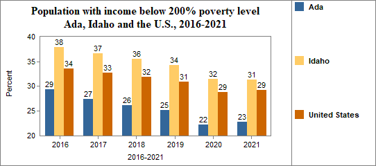 In Ada, the percent of the population with incomes below 200% of the poverty level . . .