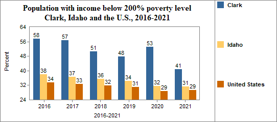 In Clark, the percent of the population with incomes below 200% of the poverty level . . .