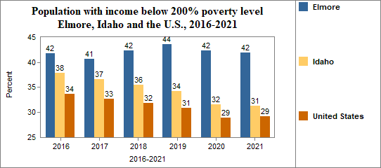 In Elmore, the percent of the population with incomes below 200% of the poverty level . . .