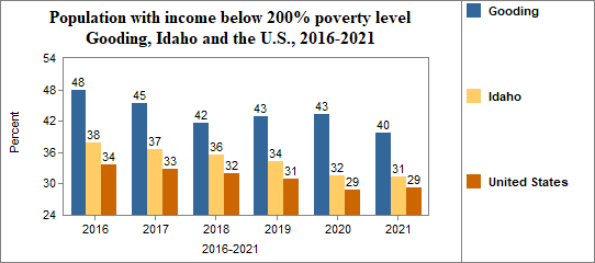In Gooding, the percent of the population with incomes below 200% of the poverty level . . .