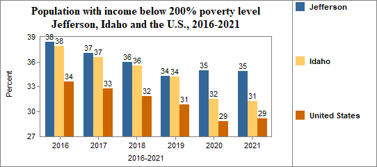 In Jefferson, the percent of the population with incomes below 200% of the poverty level . . .