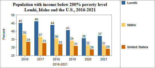 In Lemhi, the percent of the population with incomes below 200% of the poverty level . . .