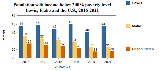 In Lewis, the percent of the population with incomes below 200% of the poverty level . . .