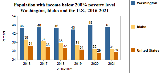 In Washington, the percent of the population with incomes below 200% of the poverty level . . .