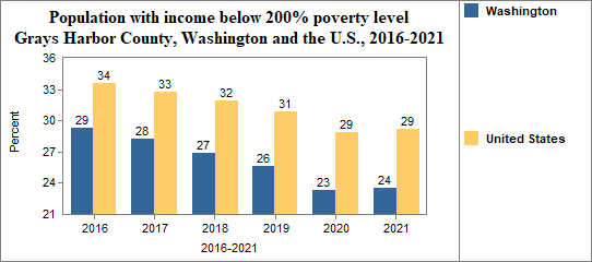 In Grays Harbor County, the percent of the population with incomes below 200% of the poverty level . . .