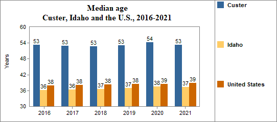 The median age in Custer . . .