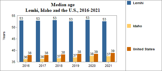 The median age in Lemhi . . .