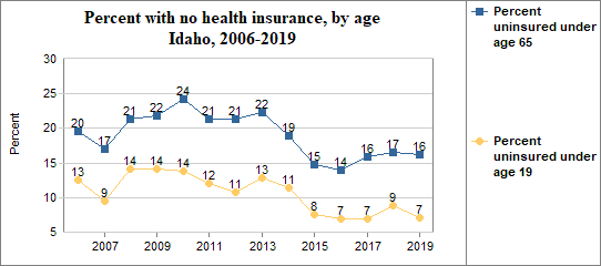- the percent under age 65 without health insurance ranked 14th - from highest to lowest - out of Idaho's 44 counties;