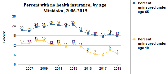 - the percent under age 65 without health insurance ranked 8th - from highest to lowest - out of Idaho's 44 counties;