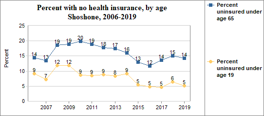 - 5.1 percent of children under the age of 19, or 136 children, had no health insurance coverage compared to 5.1 percent of all children in Idaho;