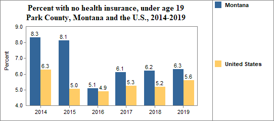 - NA percent of children under the age of 19, or NA children, had no health insurance coverage compared to NA percent of all children in Montana;
