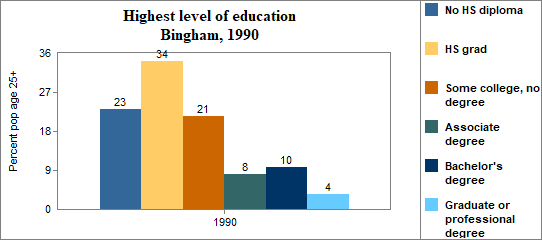 In Bingham . . . - 19 percent of the population 25 years and older in 2000 had no high school diploma, compared to 15 percent in Idaho