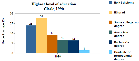 In Clark . . . - 36 percent of the population 25 years and older in 2000 had no high school diploma, compared to 15 percent in Idaho