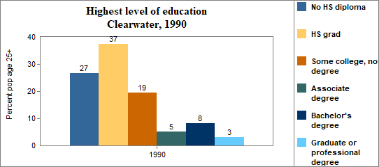 In Clearwater . . . - 20 percent of the population 25 years and older in 2000 had no high school diploma, compared to 15 percent in Idaho