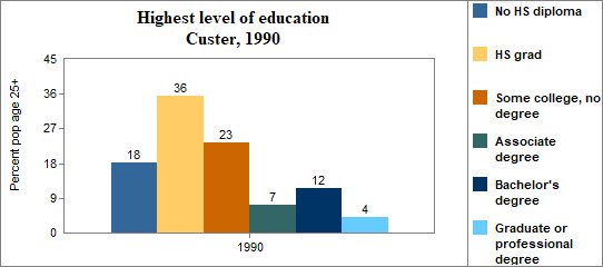 In Custer . . . - 16 percent of the population 25 years and older in 2000 had no high school diploma, compared to 15 percent in Idaho