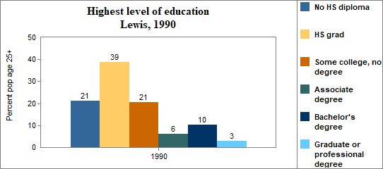 In Lewis . . . - 16 percent of the population 25 years and older in 2000 had no high school diploma, compared to 15 percent in Idaho