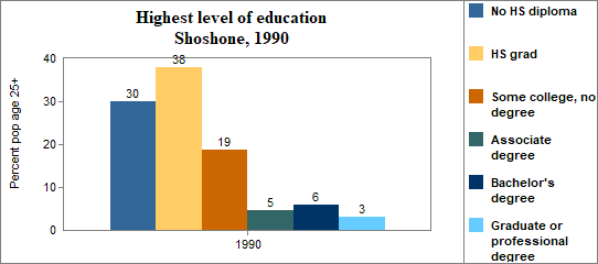 In Shoshone . . . - 22 percent of the population 25 years and older in 2000 had no high school diploma, compared to 15 percent in Idaho