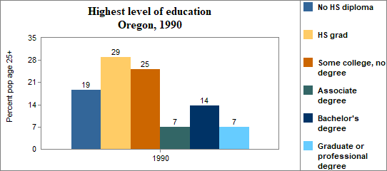 In Oregon . . . - 15 percent of the population 25 years and older in 2000 had no high school diploma, compared to 20 percent in the U.S.