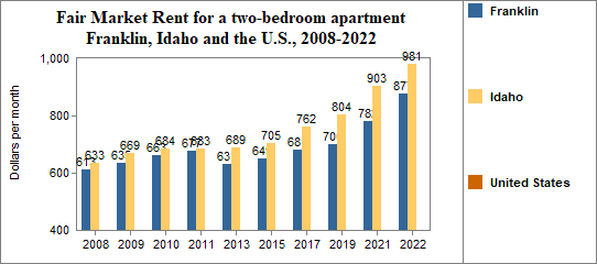 - The Fair Market Rent for a two-bedroom rental was $877 per month.