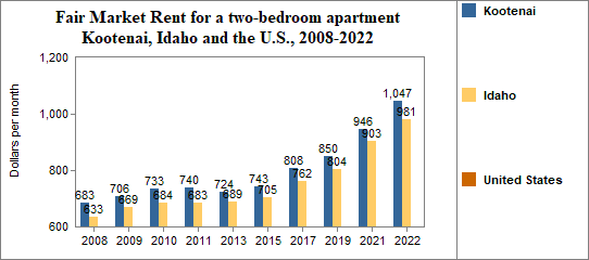 - The Fair Market Rent for a two-bedroom rental was $1,047 per month.