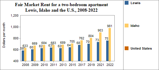 - The Fair Market Rent for a two-bedroom rental was $757 per month.