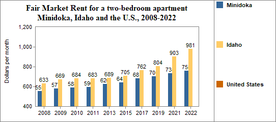 - The Fair Market Rent for a two-bedroom rental was $758 per month.