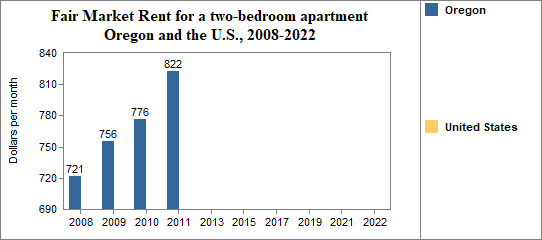 - The Fair Market Rent for a two-bedroom rental was $822 per month.