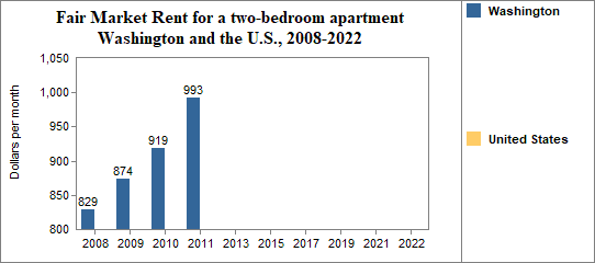 - The Fair Market Rent for a two-bedroom rental was $993 per month.