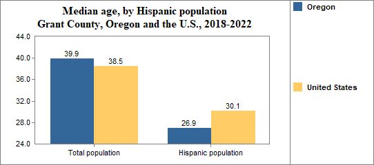 The median age in 2017-2021 in Grant County...