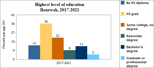 Educational attainment refers to the highest level of school completed. In Benewah between 2017-2021 . . .