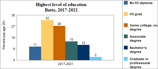 Educational attainment refers to the highest level of school completed. In Butte between 2017-2021 . . .