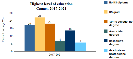 Educational attainment refers to the highest level of school completed. In Camas between 2017-2021 . . .