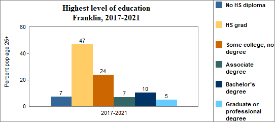 Educational attainment refers to the highest level of school completed. In Franklin between 2017-2021 . . .