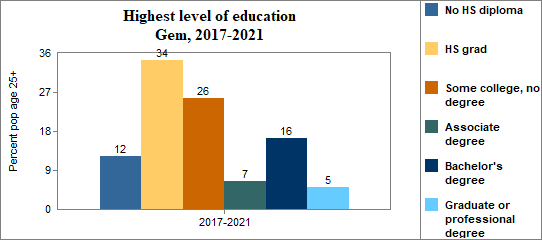 Educational attainment refers to the highest level of school completed. In Gem between 2017-2021 . . .