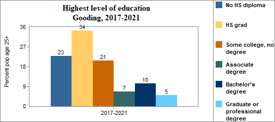 Educational attainment refers to the highest level of school completed. In Gooding between 2017-2021 . . .