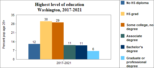 Educational attainment refers to the highest level of school completed. In Washington between 2017-2021 . . .