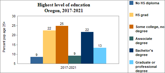 Educational attainment refers to the highest level of school completed. In Oregon between 2017-2021 . . .