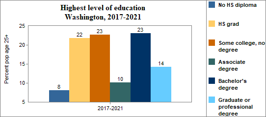 Educational attainment refers to the highest level of school completed. In Washington between 2017-2021 . . .