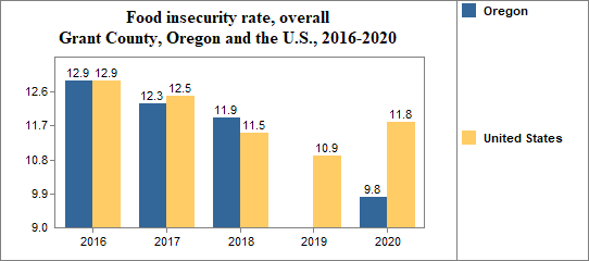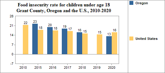 Between 2010 and 1900, the food insecure population in Grant County increased by NA percent and the number of food insecure children increased by NA percent.