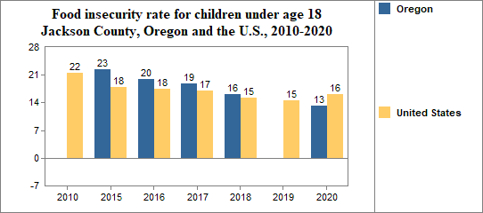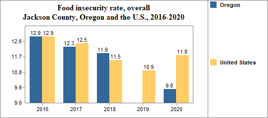 Between 2010 and 1900, the food insecure population in Jackson County increased by NA percent and the number of food insecure children increased by NA percent.