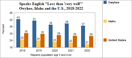 - the foreign-born Hispanic population numbered 1,025, and 4 percent spoke only English, 15 percent spoke English "Very well" while 81 percent spoke English "Less than 'very well.'"