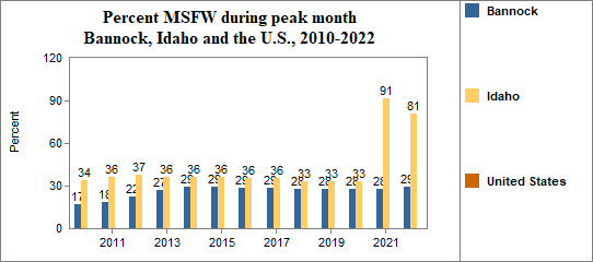 - and in that peak month the migrant workers made up 29 percent of Bannock's agricultural workforce.
