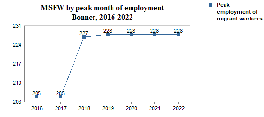 - and in that peak month the migrant workers made up 36 percent of Bonner's agricultural workforce.